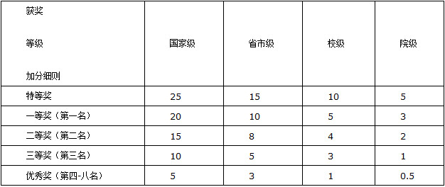 *所有科技竞赛参与者都可以加0.5分。同一系列不同级别的比赛获奖按最高级别获奖分数加分。不同系列比赛获奖加分可以累加。