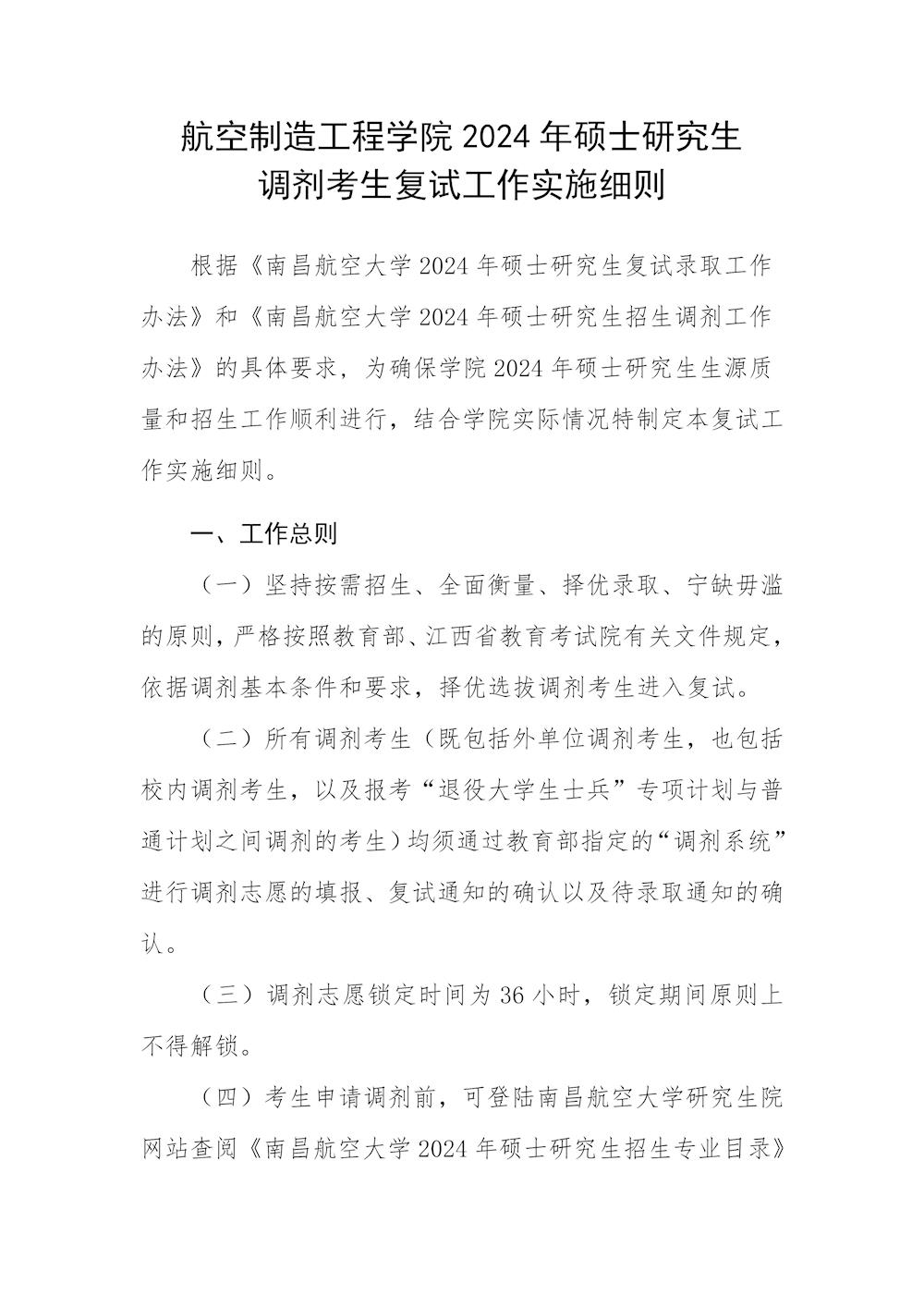 航空制造工程学院2024年硕士研究生调剂考生复试录取工作实施细则 来源: 发布时间:2024-04-04 13:28:01 浏览次数: 次 【字体:小 大】 航空制造工程学院2024年硕士研究生调剂考生复试录取工作实施细则.pdf 责任编辑:袁源平 【打印正文】