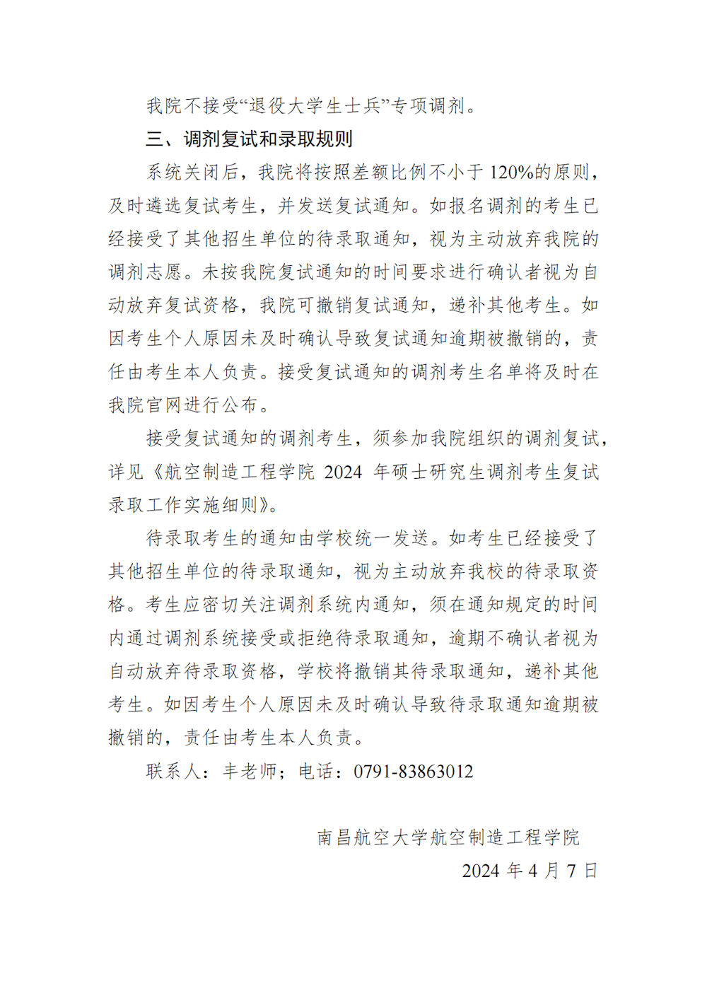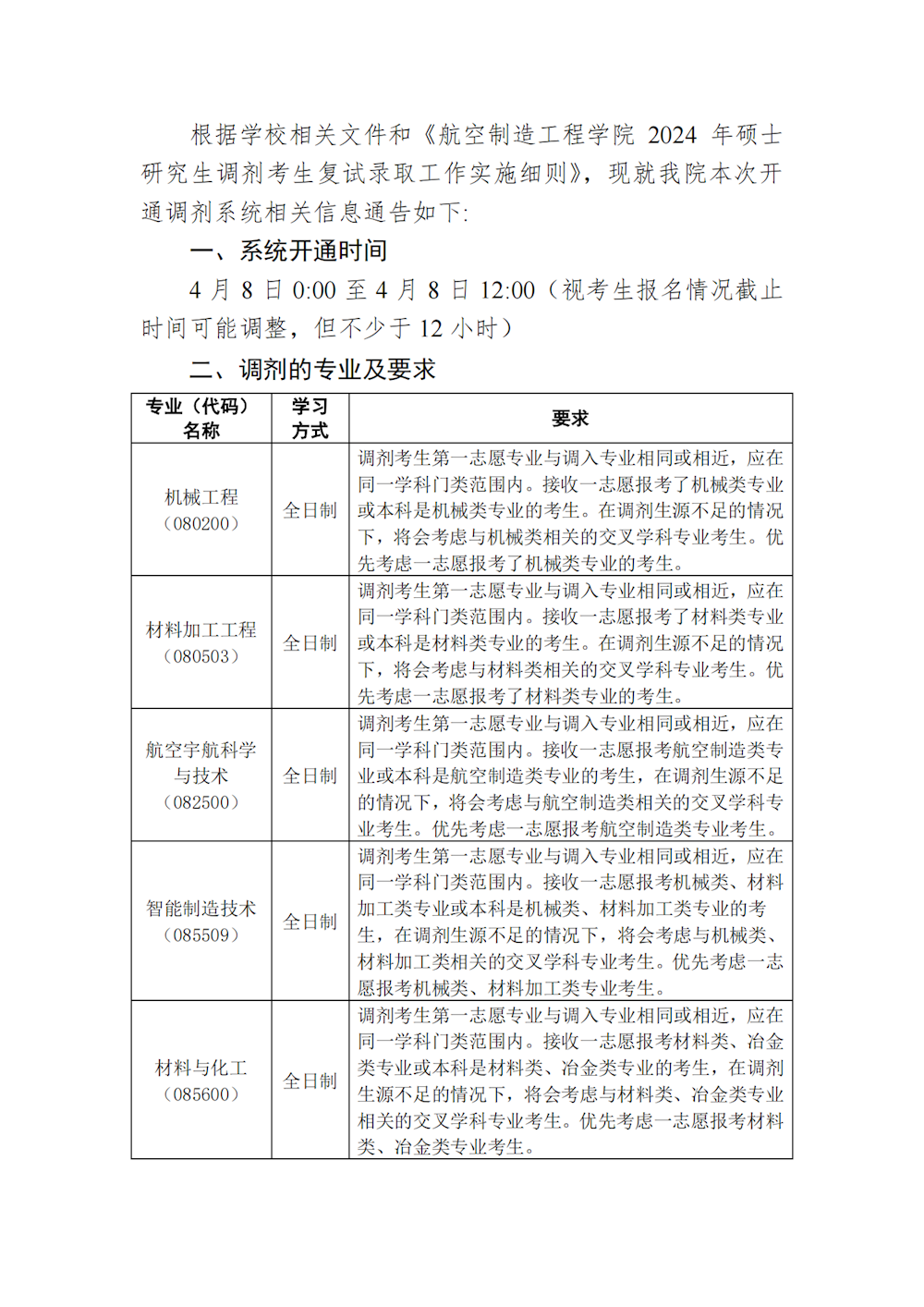 航空制造工程学院关于开通调剂系统相关信息的通告 来源: 发布时间:2024-04-07 14:43:54 浏览次数: 次 【字体:小 大】 航空制造工程学院关于开通调剂系统相关信息的通告.pdf 责任编辑:袁源平 【打印正文】
