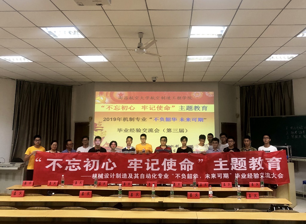 航空制造学院“不忘初心 牢记使命”之“不负韶华,未来可期”第三届机械设计制造及其自动化专业毕业经验交流大会于6月14日在B100举行。此次活动邀请了该专业2015级考(保)研代表、优秀毕业设计作品代表和就业代表、2016级全体学生、2017级和2018级部分学生、学院学工负责人、相关系部的教师代表。